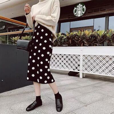 マキシスカート 脚魅せミニスカート マーメイドスカート 夕イトスカ一トドット シュニール スカート ニット ラシャ レトロ 快適性 ハイウエスト おしゃれ ウエスト引き締め