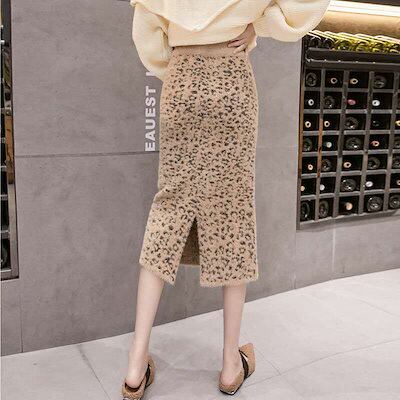 脚魅せミニスカート マーメイドスカート 夕イトスカ一ト豹柄 厚手 ニットスカート 韓国ファション レディース ハイウエスト ロングスカート ゆったり