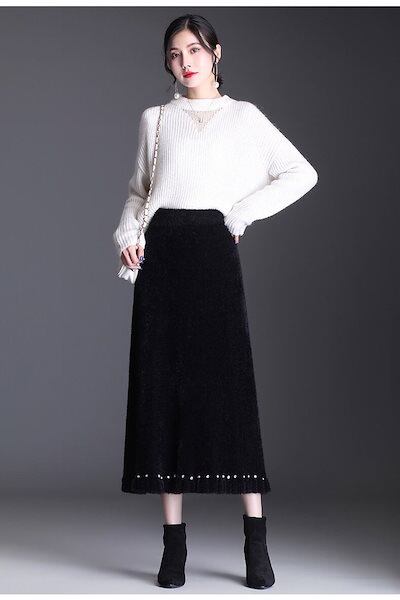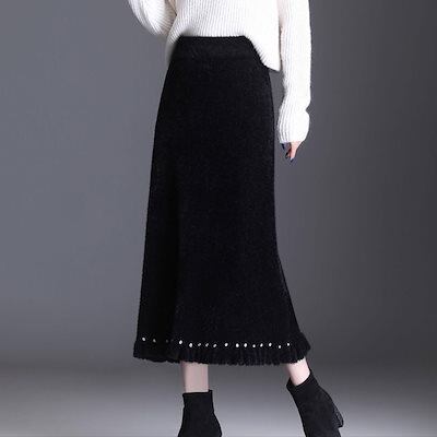 マキシスカート 脚魅せミニスカート マーメイドスカート 夕イトスカ一ト裾飾り ゴムウエスト ミディアム丈 Aライン 厚手 レディース ロングスカート ゆったり