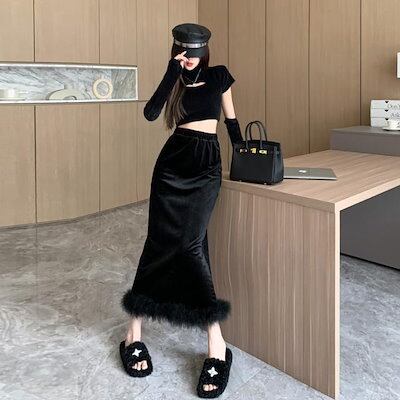 マキシスカート 脚魅せミニスカート マーメイドスカート 夕イトスカ一トハイウエスト セミロング スカート レディース マーメイドスカート