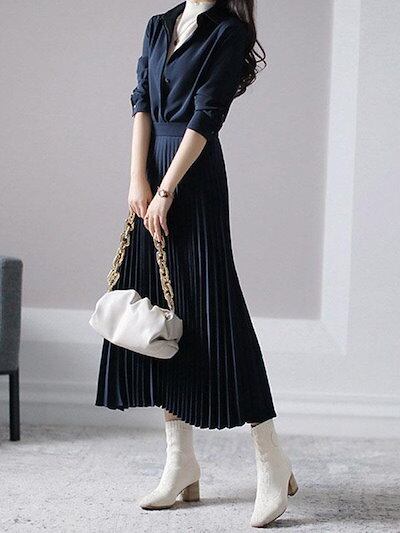 ワンピース スーツワンピース プリーツ シフォン スリミング 韓国 ワンピース ドレス パーティードレス ロングワンピース 卒業式 ママ スーツ 入学式 ママ スーツ タイトワンピース