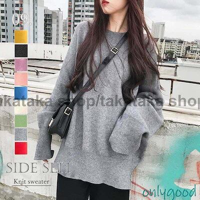 レディース ニット トップス 秋冬 サイドスリット セーター ニット プルオーバー 長袖