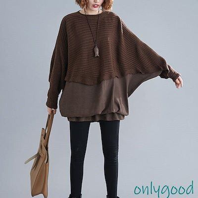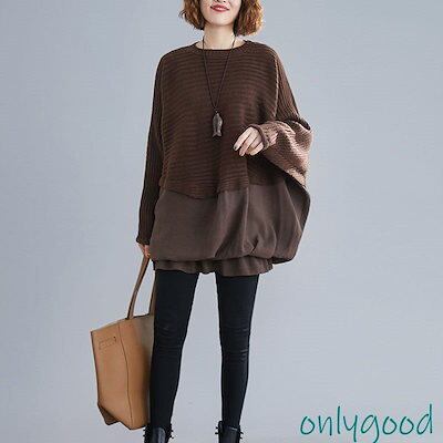 トップス レディース 秋 ブラウス 長袖 ニット セーター プルオーバー ニットセーター ドルマンスリーブ 無地 切り替え 体型カバー 大きいサイズ