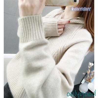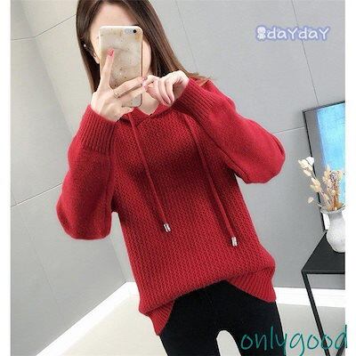 ニットセーター レディース 秋 冬 40代 長袖トップス 無地 セーター カットソー ニットウェア フード付き ゆったり 大きいサイズ 暖かい おしゃれ 大人 着痩せ