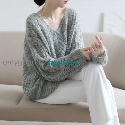 ニット レディース セーター Vネック ケーブルニット あぜ編み インナー メッシュ 長袖 無地 ゆったり ルームウェア 暖か 高級感 秋冬 新作