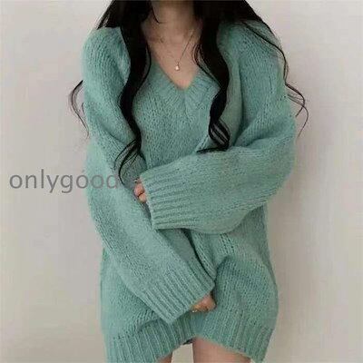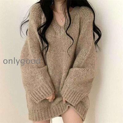 ニットセーター プルオーバー ニット レディース トップス セーター ロングセーター Vネックニット チュニック ワンピース 深Vネック 無地 シンプル ゆったり