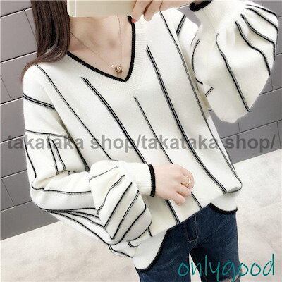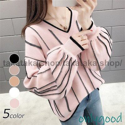 ニットセーター レディース 秋冬40代トップス 長袖 アウターvネックパフスリーブ メリヤス ニットソー ニットセーター ロング丈 メリヤス韓国風 通勤 OL 着痩せ