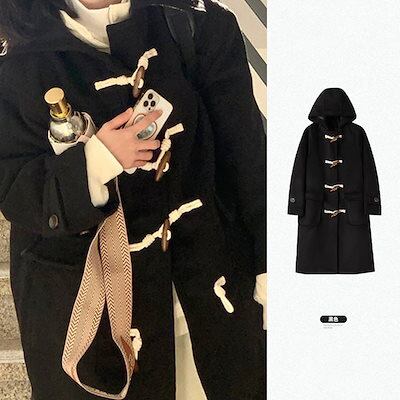 ウールコート レディース オードリー風 2024秋冬新作 韓国風 フード付き ミドル丈 ホーンボタン ウールコート