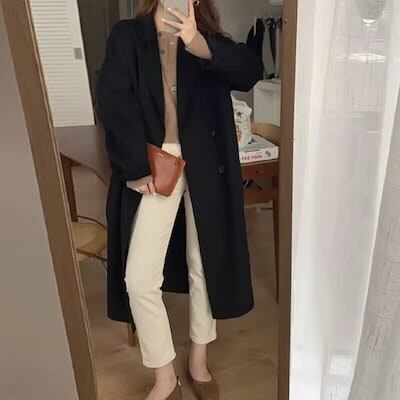 高級ヘボン風ウールコート ロングウールコート レディース 2024年秋冬新作