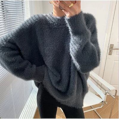 セーター レディース ニットセーター 長袖 丸首 トップス 無地 プルオーバー サマーニット 大きいサイズ 体型カバー リブニット 重ね着 通勤 きれいめ