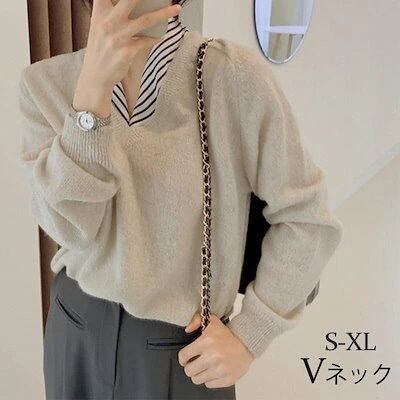 カットソー レディース トップス ニット 長袖 無地 ストライプ 韓国風 インナー レイヤード