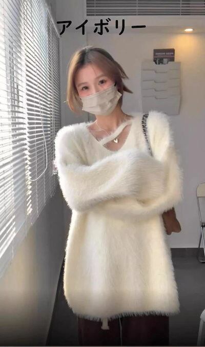 トップス レディース カットソー ゆったり 大きいサイズ 長袖 トップス Vネック トレーナー ニットtシャツ 無地 暖か 防寒 春 秋 冬