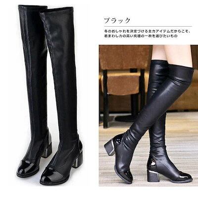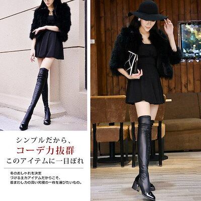 無地 レディース 歩きやすい ニーハイブーツ 黒 美脚 ロングブーツ ヒール 大きいサイズ カ