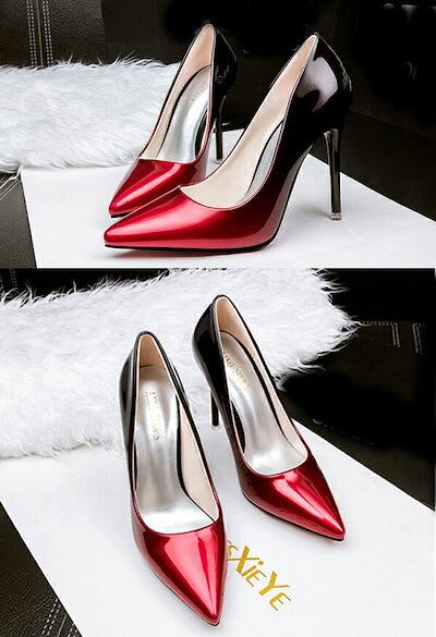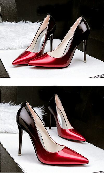 ハイヒール パンプス 靴 ポインテッドトゥ レディース 結婚式 10cmヒール 美脚 美脚パンプス ハイヒール ピンヒール グラデーションパンプス グリッター グラデ加工 女っぽ ドレスコーデ フォー