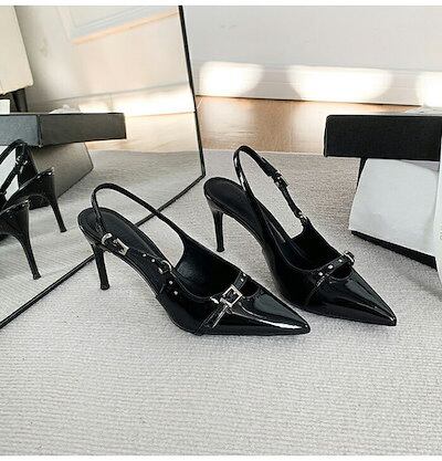 ハイヒール レディース ポインテッドトゥ ピンヒール 美脚パンプス 靴 ヒール4cm 6cm 8cm シンプル ベルト 痛くない 歩きやすい エナメル美脚 華奢見え ベーシック シューズ カジュアル