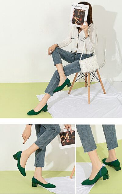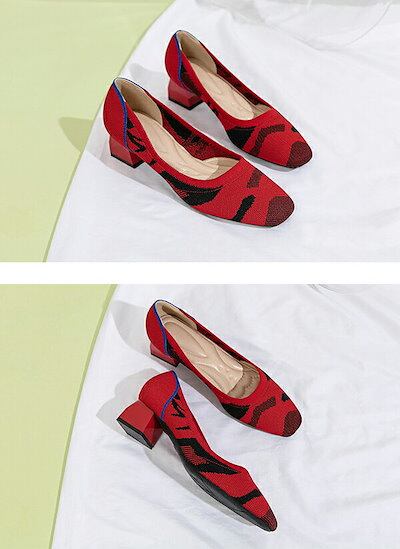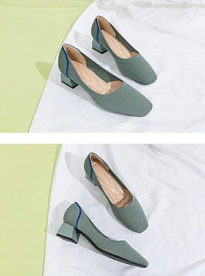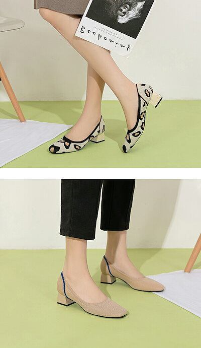 パンプス フォーマル ローファー レディース 柔らか 4cmヒール ニット素材 チャンキーヒール フラットシューズ スクエアトゥ ぺたんこ 女っぽ 歩きやすい 疲れない 痛くない ローヒール シューズ