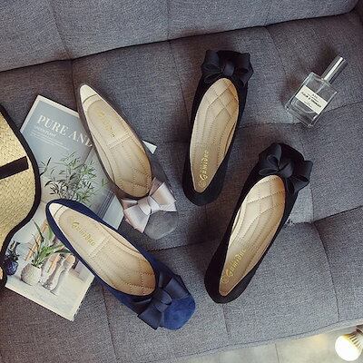 パンプス リボン フラットシューズ リボン レディース バレエシューズ 痛くない 歩きやすい スクエアトゥ ぺたんこ コーデ フラット ローヒール スエード 小さいサイズ 大きいサイズ オフィス 通勤