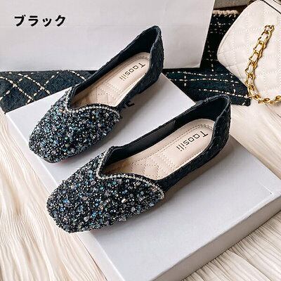 ぺたんこパンプス レディース ぺたんこシューズ キラキラ Vカット 大きいサイズ靴 バレエシューズ カジュアル フラット ローヒール スクエアトゥトゥ 女っぽ 歩きやすい 疲れない カジュアル 美脚