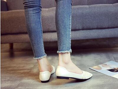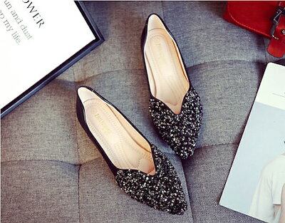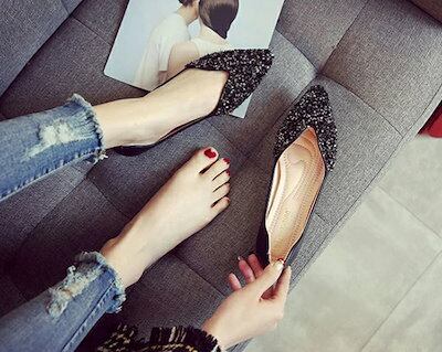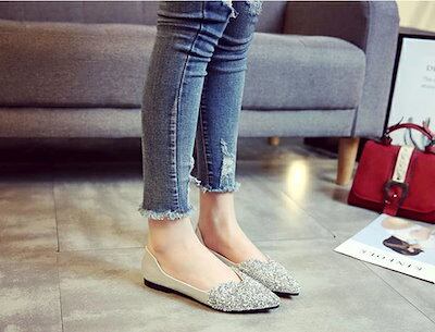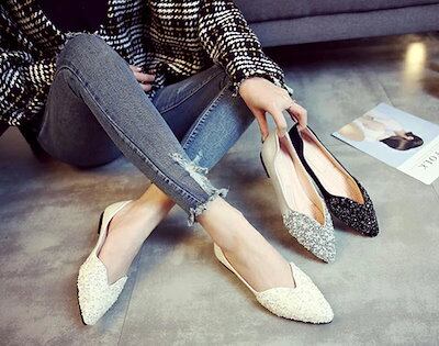 レディースぺたんこパンプス キラキラ Vカット 大きいサイズ靴 バレエシューズ カジュアル フラット ローヒール ポインテッドトゥ 女っぽ 歩きやすい 疲れない