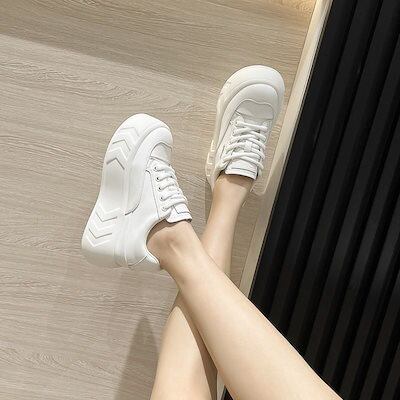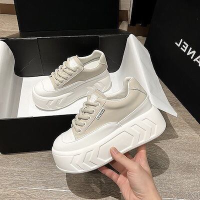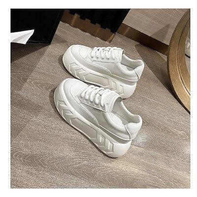 厚底シューズ 新作 ダットスニーカー 美脚 スニーカー 白靴 韓国靴 シューズ トレンド 運動靴