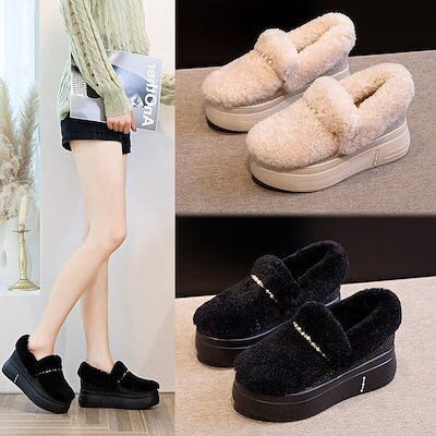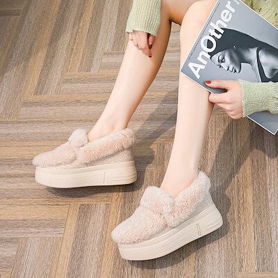 7cm身長UP厚底靴厚底 スニーカー秋と冬にえてベルベットコットンシューズスノーブーツレディースリアルファ