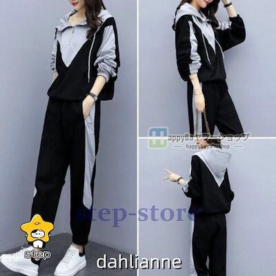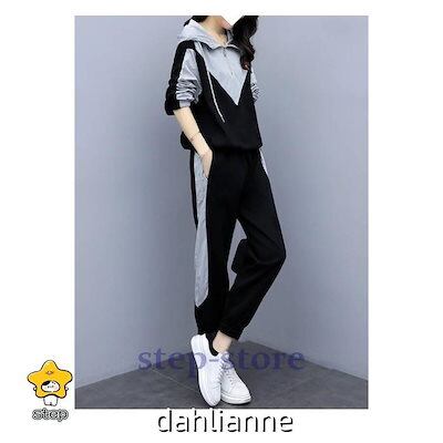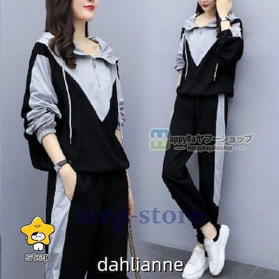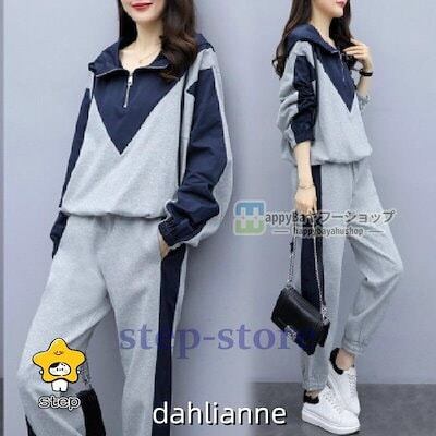 ジャージ 上下セット レディース スウェット フード付き 長袖 トレーナー ロングパンツ スポーツウェア運動着 部屋着 ゆったり 着痩せ 大きサイズ