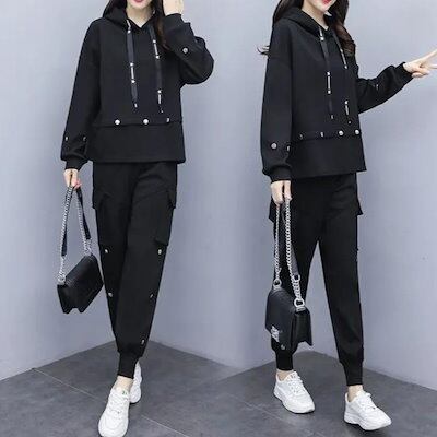 体型カバー セットアップ 長袖 ジョガーパンツ ジャージ カジュアル スウェットパンツ フード付きパーカー スウェット テーパードパンツ レディース 春秋 ウェストゴム スポーツウェア 運動着 部屋着
