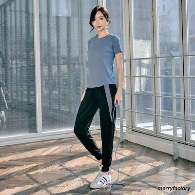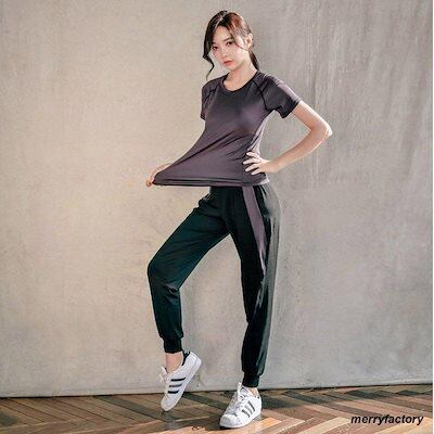 スポーツウェアヨガウェアトレーニングウェアランニングウェアレディース上下セット夏ジムフィットネス吸汗速乾Tシャツパンツトップス