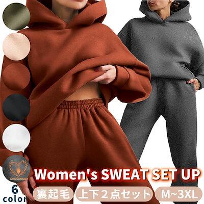新作 スウェット 上下セット 裏起毛 レディース 秋冬 大きいサイズ セットアップ M L XL 2XL 3XL ルームウェア ウォーキング トップス パンツ 暖かい 保温