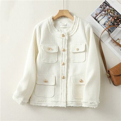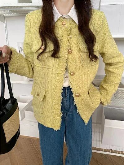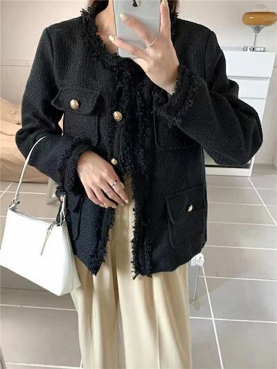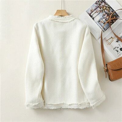 ツイードジャケット レディース 長袖 春 秋 ジャケット カーディガン 羽織り ノーカラー ツイード ミディ丈 無地 ポケット 春秋 カジュアル フリンジ スーツセレモニー きれいめ 上品 フォーマル