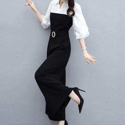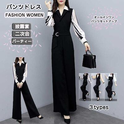 パンツドレス オールインワン パンツセットアップ ドレス セットアップ レディース パンツスーツ フォーマル 大きいサイズ ワイドパンツ 長袖 ガウチョパンツ パーティー 披露宴 二次会 服装 ブラッ