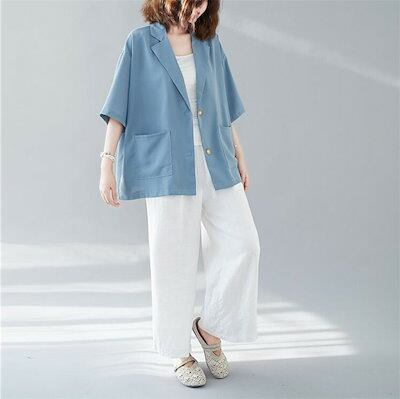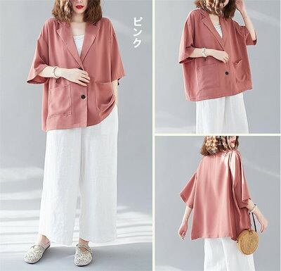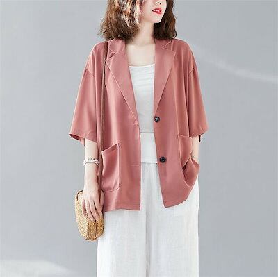 薄手レディース ジャケット ビジネス 通勤 スーツ 入学式 卒業式 体形カバー ゆったり目 トップス カーディガン カジュアルスーツ フォーマル 5分袖 半袖 レディーススーツ フォーマル オフィス