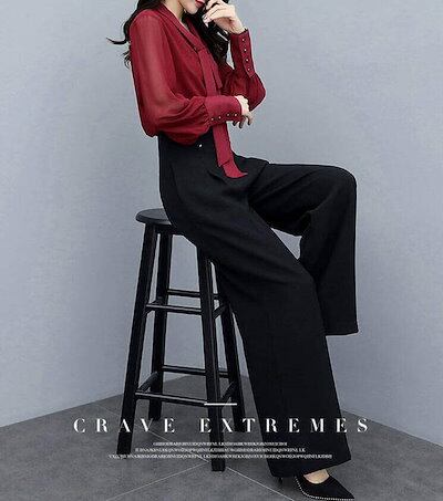 パンツスーツ セットアップ レディース パンツドレス 2点セット ワイドパンツ パーティードレス ロング パンツ ブラウス シャツ フォーマル 春 夏 秋 冬 長袖 大きいサイズ ママ スーツ オフィ