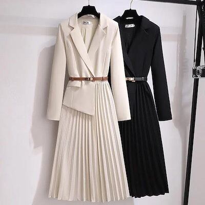 入学式 ママスーツ レディース ワンピース 卒業式スーツ 七五三 母 卒園式 スーツワンピース フォーマル Vネック プリーツワンピース フェイクレイヤード エレガント セレモニースーツ 長袖 春秋
