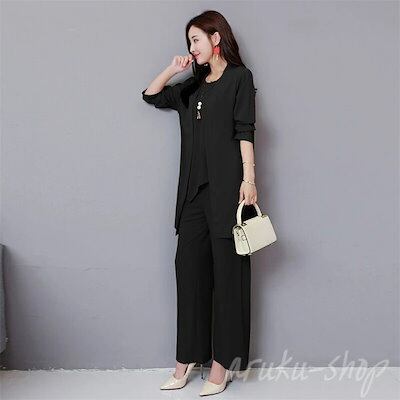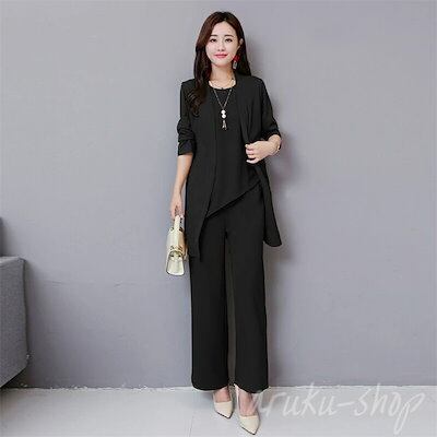 セットアップ パンツスーツ レディース 3点セット パンツドレス フォーマル ブラウス ガウチョパンツ ワイドパンツ ロング パンツ 長袖 大きいサイズ オフィス