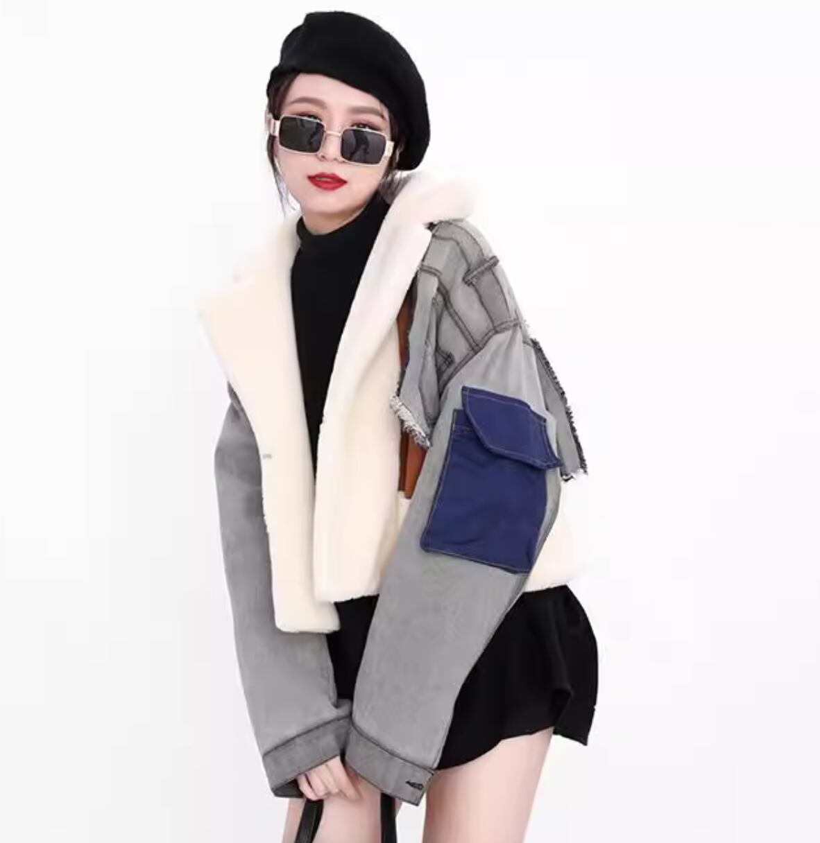裏起毛 デニムジャケット アウター 分厚 縫付 y2k ブルゾンジャケット レディース コート 子羊の毛 短いスタイル ストリートウェア