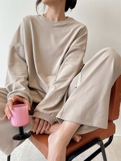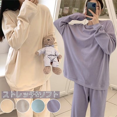 ストレッチ&柔らかい ルームウェアセットアップ 部屋着 レディース パジャマ 秋冬 上下セット 韓国ファッション