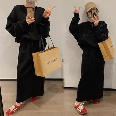 セットアップ 裏起毛 スウェット+スカート プルオーバー レディース 秋 冬韓国ファッション