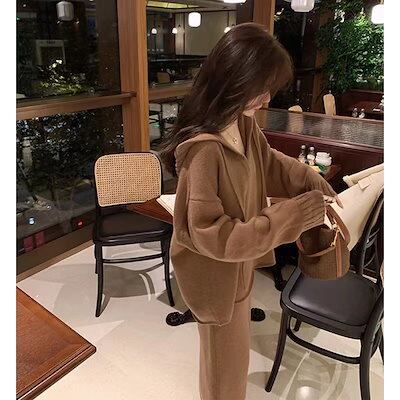 【2枚購入で 2oo円OFF!】秋冬 新作 シンプル 気質 レディースセットアップ 百掛け アウター 二点セット 上下セット セーター ニットスカート セットアップ 大きめサイズ