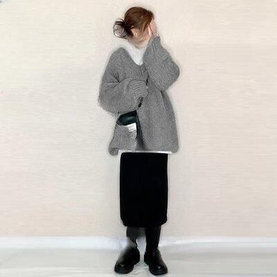 【超人気好評 急速出荷】日系 大きめサイズ レディース 秋 冬 ニットセットアップ 体型カバー セーター トップス ロングスカート 二点セット 着痩せ セーター+スカート 秋冬 百掛け レディースファ