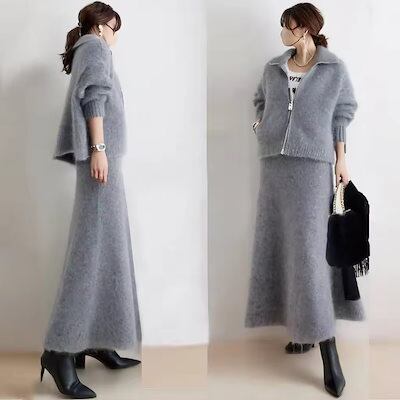 【超人気好評 急速出荷】日系 レディース 秋冬 新作 レディースセットアップ ニット アウター おしゃれ セーター ニットスカート 百掛け レディースファッション 気質 二点セット 上下セット セット