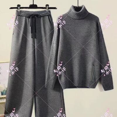 【超人気好評 急速出荷】日系 秋冬 新作 セーター ニットワイドパンツ レディースセットアップ ニット アウター おしゃれ 気質 二点セット 上下セット セットアップ