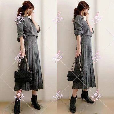 【超人気好評 急速出荷】日系 レディース 気質 二点セット 秋冬 新作 レディースセットアップ ニット アウター おしゃれ セーター ニットスカート 上下セット セットアップ