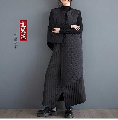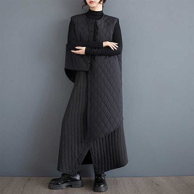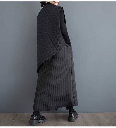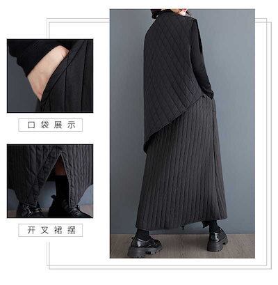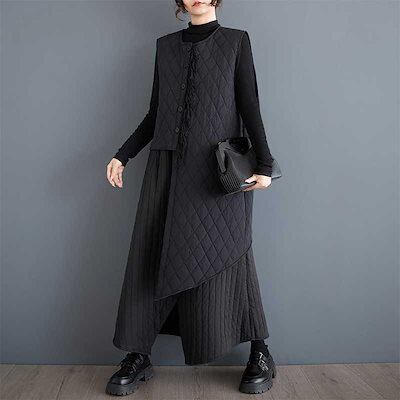 「ファットガール」 2024秋冬新品 中綿ベスト スカート 上下セット 大きいサイズ 体型カバー キルティング 不規則 レディース セットアップ メガ割