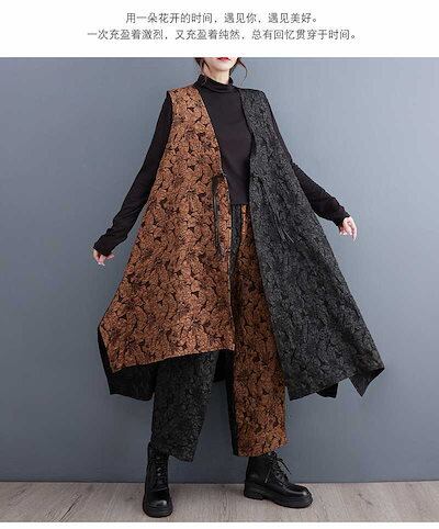 「ファットガール」 秋冬 2セット カーディガン+ワイドパンツ セットアップ レトロ 花柄 ドッキング ロングベスト レディース セット