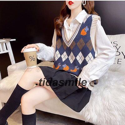 ニットベスト レディース ベストセーター Vネック 菱形 ノースリーブ トップス カジュアル コーデ 暖かい 可愛い ゆったり 春秋冬 おしゃれ