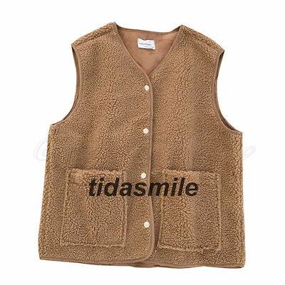 フリースベスト レディース ボアベスト 無地 Vネック トップス カジュアル ポケット付き もこもこ 軽量 暖かい 秋冬 きれいめ おしゃれ