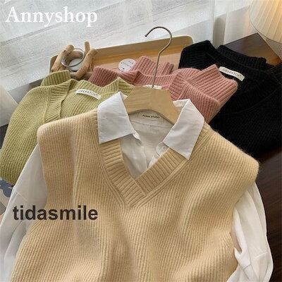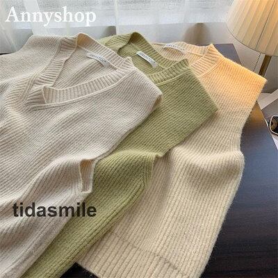 ニットベスト レディース トップス セーター カットソー Vネック 無地 シンプル プルオーバー レイヤード 大きいサイズ 着痩せ 通勤OL 秋冬