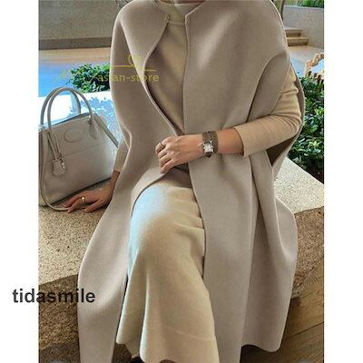 ジレ 秋冬 レディース ベストコート ドロップショルダー 秋物 ロング丈 羽織り カーディガン ノーカラー ベスト 黒 アウター 温かみ 大人 無地 ゆったり