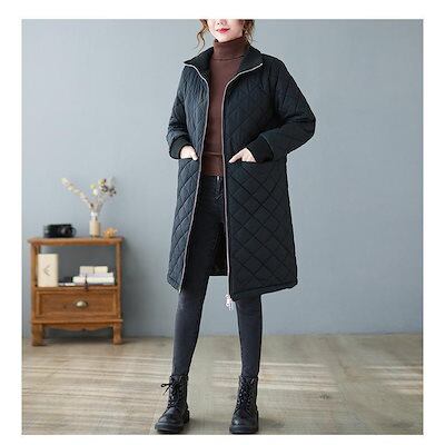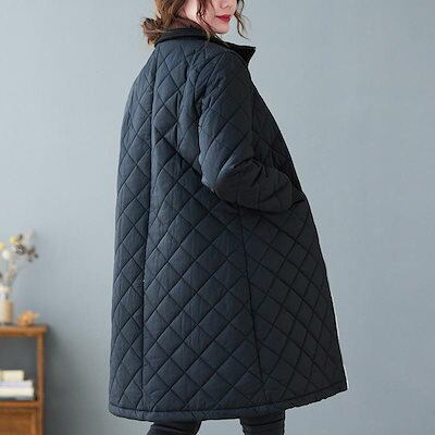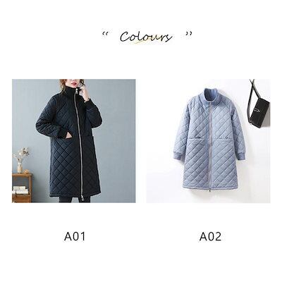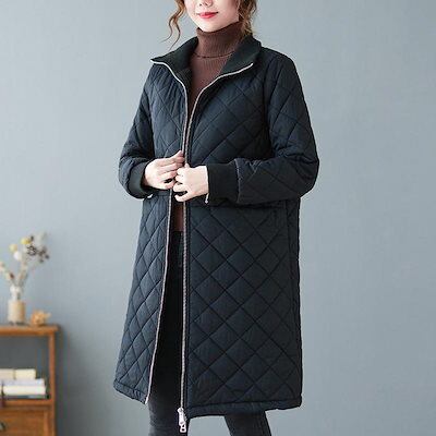キルティングコート 中綿コート レディース ロング丈 中綿ジャケット ジップアップ ブルゾン 裏ボア 羽織 一部即納 秋冬 アウター 防寒 体型カバー 無地